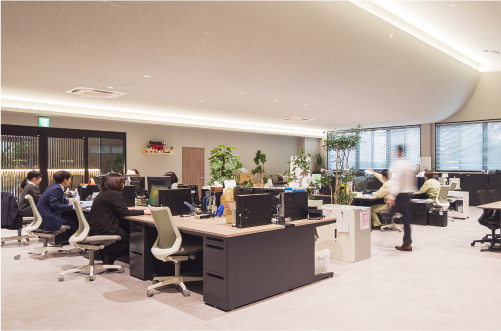 当社は、新社屋建設を機に部門の垣根を越えてしっかりコミュニケーションを取りながら仕事が行えるようワンフロアの事務所になりました!